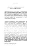 expresses something intended by the speaker; and it must count as fight insofar as it conforms to socially recognized expectations. 21Undistorted communication implies that all validity claims are agreed upon by the participants in dialogue. As soon as any of the validity claims is doubted by a hearer, the communicative act stops. In this case, "argumentative discourse" should take place. In a discourse, the force of the argument is the only criterion, and the correctness of norms is corroborated by consensus achieved through argumentative reasoning. 22 We can see that Habermas' theory of universal pragmatic corresponds with his theory of rationality. In fact, the claim of rationality is assumed by Habermas to be inherent in the formal presuppositions of speech acts and dialogue. It is interesting to see that Habermas' distinction between "elocutionary" and "propositional" structures of utterance correspond to his notions of practical rationality and instrumental rationality, respectively.23 (4) Finally, I should briefly refer to Habermas' assumptions with regard to human psychology as an anthropological premise of his theory of rationality. Contrary to the structuralist perception of the individual as passive embodiment of social relations, Habermasian theory finds the structural definition and requirement of a rational society already present in the logic of the personality development of individuals. For Habermas, the basic dynamics of personality develop- ment is a move toward increasing autonomy, self-consciousness, and responsibility. Identity, Habermas argues, is produced through two successive stages of "socialization" and "individuation". 24 While the stage of socialization is represented by the development of "natural identity" and later "role identity", the stage of individuation is charac- terized by development of an "ego identity".25 It is at this stage of "ego identity" that the process of need-interpretation -- which until then depended on an uncontrolled cultural tradition -- can itself become the object of discursive will-formation.26 Habermas' psychological theories are mostly influenced by Kohlberg's stages of moral consciousness, re- formulated within a general action-theory framework. 27 It is interesting to see that Habermas' positive conception of personality development not only accords with his theory of rationality, but also finds parallels between historical developments and personality dynamics.28